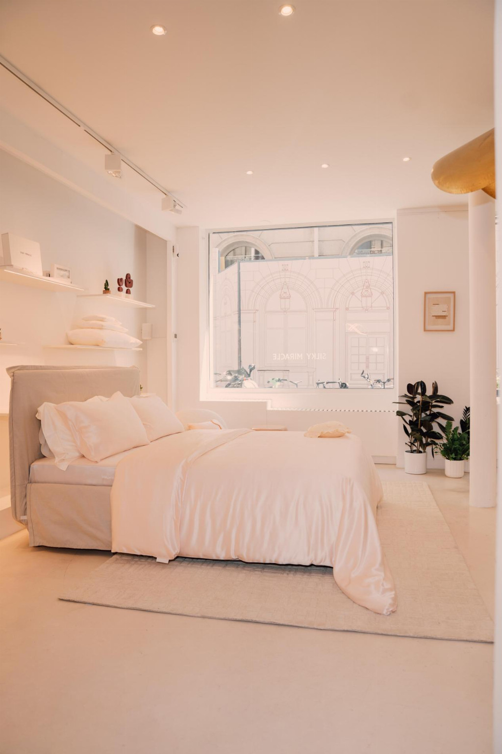 精品店坐落于一栋经典的奥斯曼风格建筑内,SILKY MIRACLE 巧妙地保留了原址的历史韵味,通过大面积通透橱窗将巴黎街头的自然光引入室内。空间设计并未遵循传统的零售陈列逻辑,而是构建了一个极具包容性的“现代宅邸”。